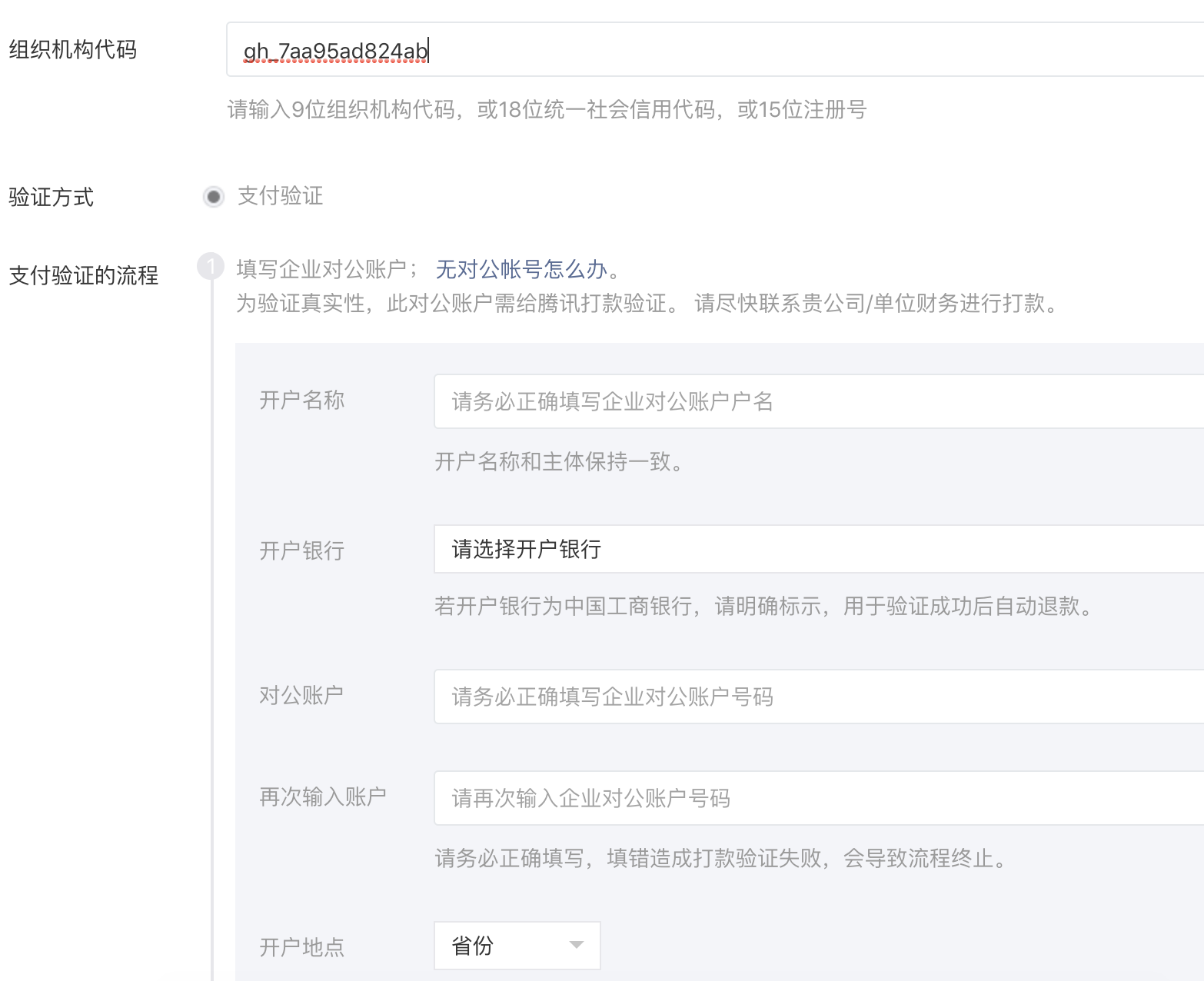 个人小程序被冻结,解冻过程中需要提供对公信息,个人账号没有对公信息,导致无法解冻