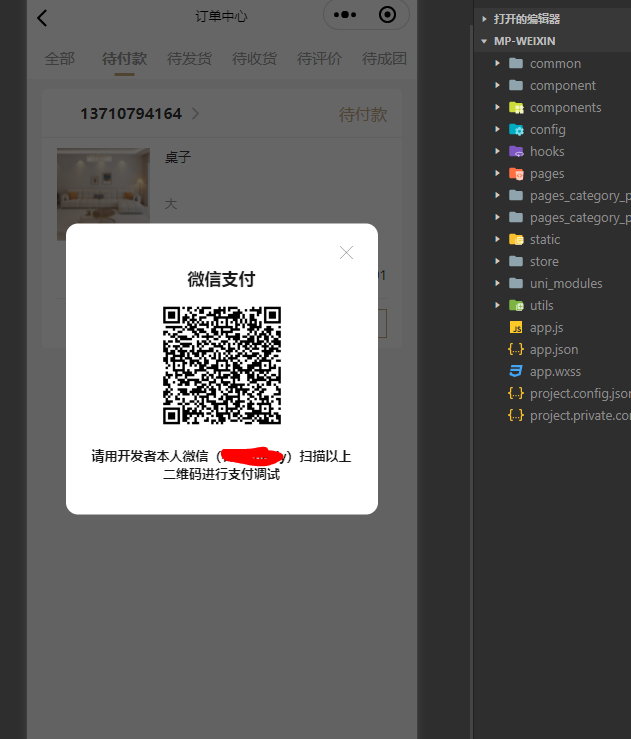 -在本地开发可以触发微信支付弹框,并且可以支付成功,在后台日志都是发送到微信支付请求正确的。