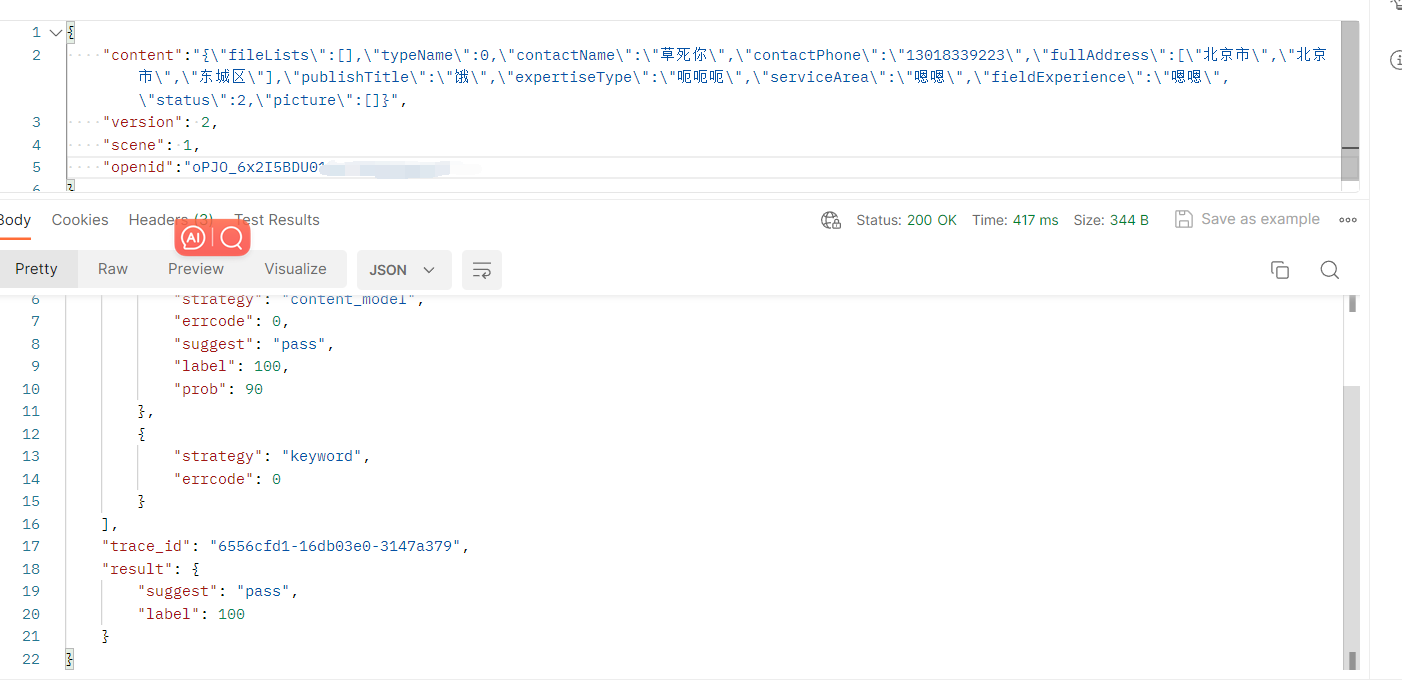 可以看见结果是pass,请问为什么? trace_id为6555f41b-61e5d4f8-379f4564