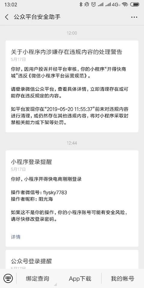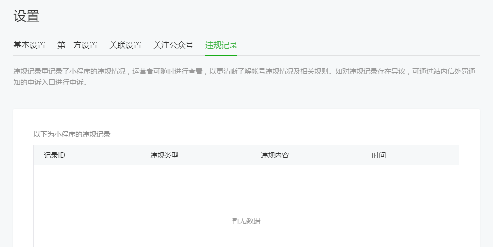 手机微信端收到小程序违规警告,但登录微信公众平台即小程序平台后,违规记录内没有详细信息,找不到具体的违规说明,请帮忙指引一下。
