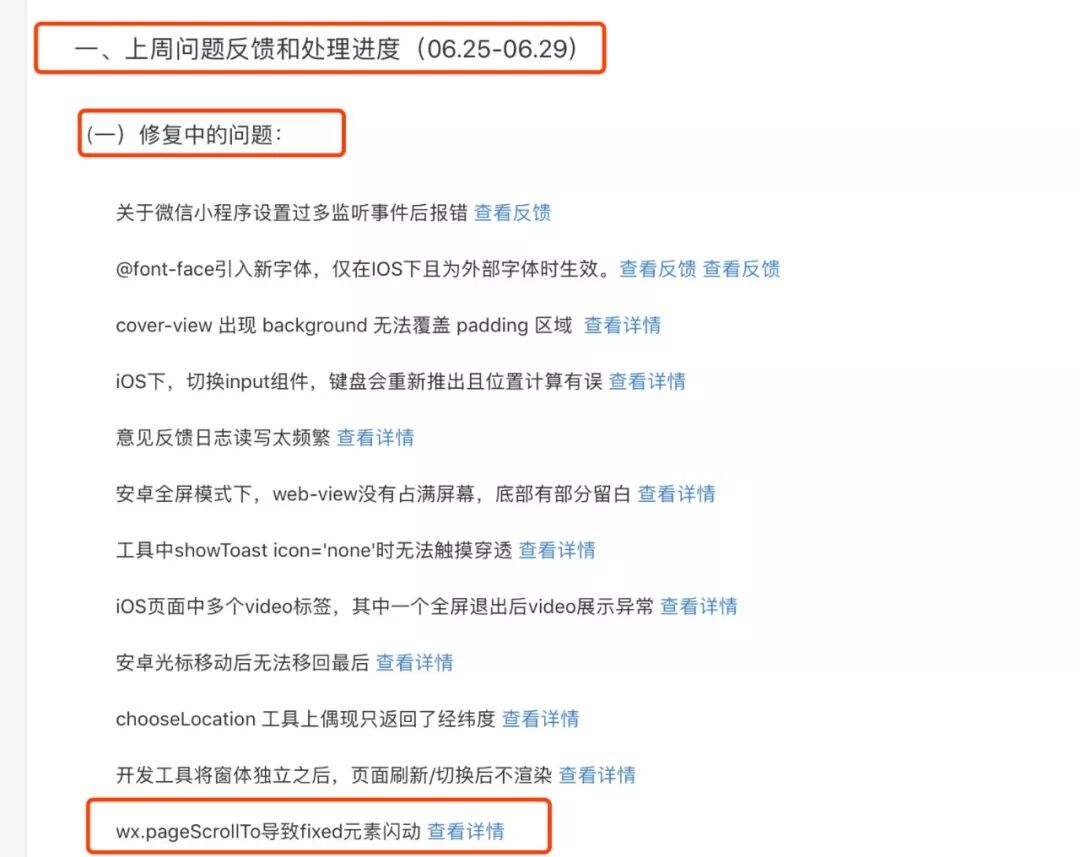 以下是上周我们在社区的更新迭代、收到的问题反馈、需求的处理进度,希望同大家一同打造小程序生态。
