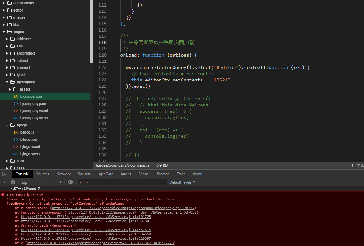 小程序生命周期其实加载this.editorCtx.setContents直接报错上面图片。如果放在一个方法内,点击执行的话是正常的,没办法进入页面加载该方法