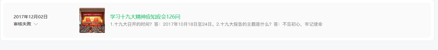 请贵平台帮忙解决:“学习十九大精神应知应会126问”一文有错误,现需要删除该文,但后台显示“审核失败”,点击链接显示“内容审核中”,后台点开后无法删除或者修改,如何解决?(链接:http://mp.weixin.qq.com/s?__biz=MzI3ODM5MjYxMQ==&mid=2247485255&idx=2&sn=c335d4b139436b229f8525b1827bafee&chksm=eb56fd0bdc21741dde6eb2adcf505e2d65e1c0d3f9553809fb727053f69faa08fbee6afc72e8#rd)