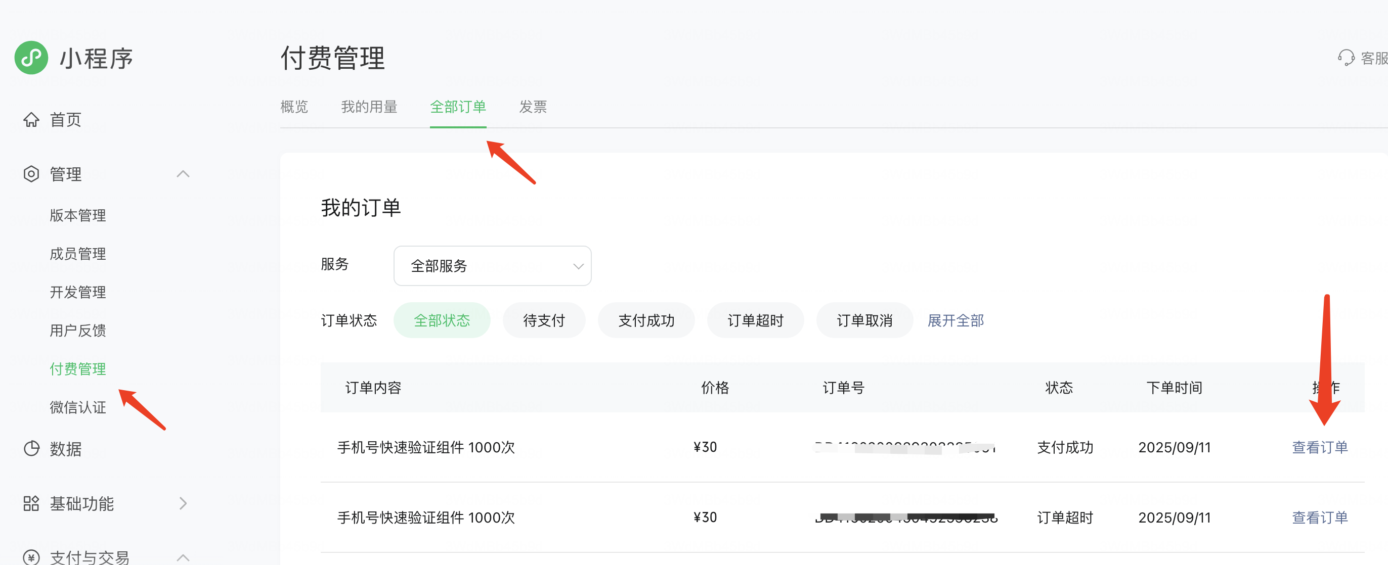 登录小程序后台mp.weixin.qq.com 点付费管理,进入订单详情开票即可。