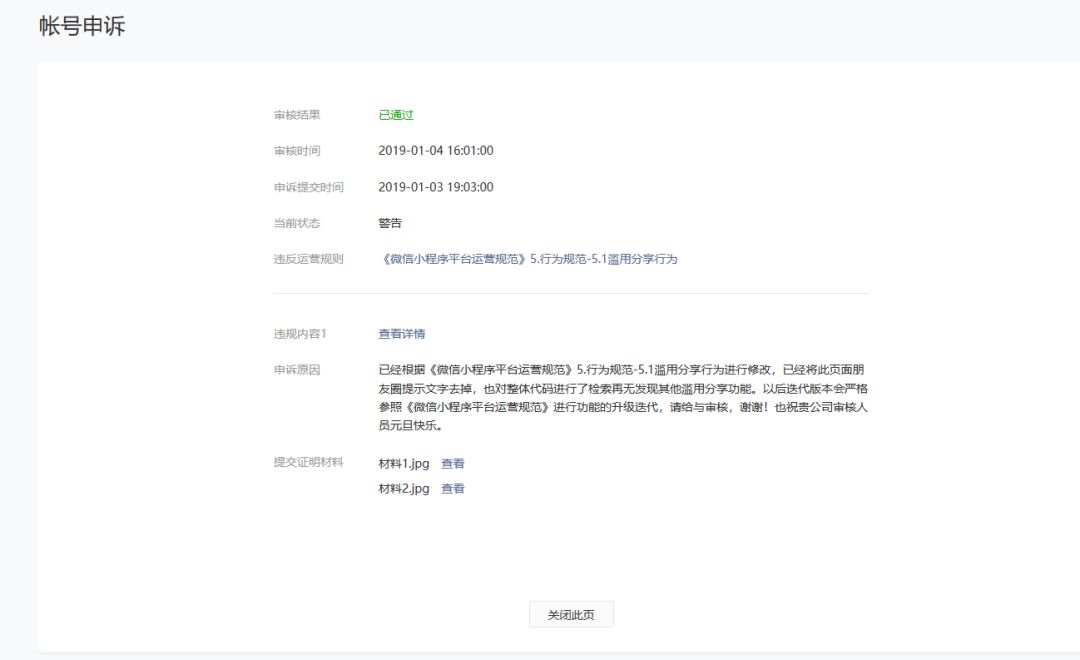 第一次说我们的小程序涉嫌诱导分享的页面是这个
