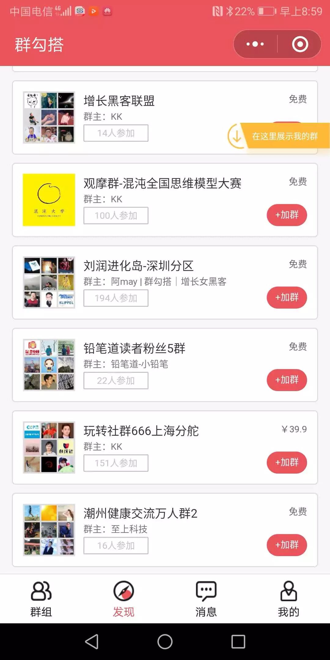 整改前的界面,点加群会提示加好友转账(违规内容):