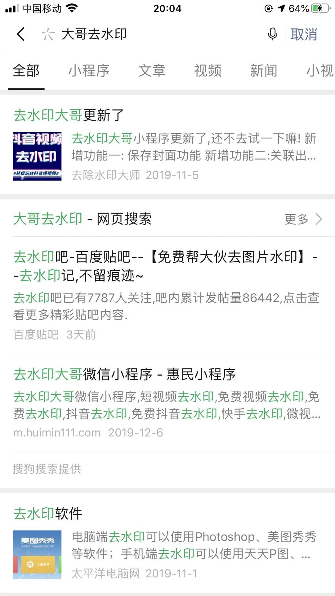 默认搜索时是全部选项,以前可以显示在第一个的,现在不显示了,要点击小程序选项才能显示,一般用户都是直接搜索的,这个会造成流量损失