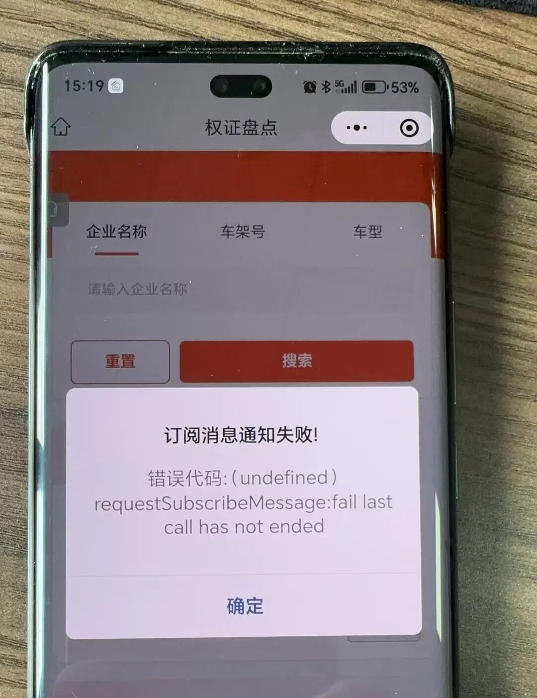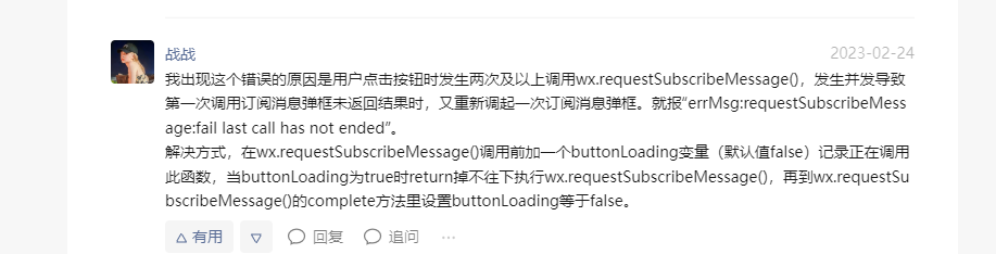 执行wx.requestSubscribeMessage时,报错:requestSubscribeMessage:fail last call has not ended