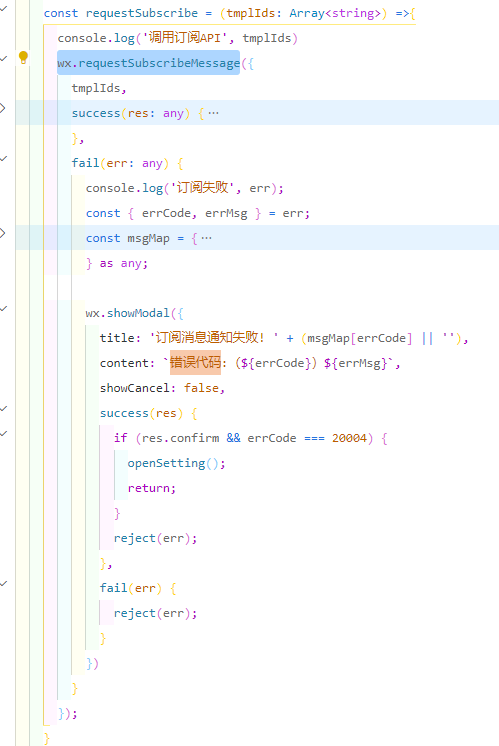 你好,是不是点击按钮时发生两次及以上调用wxrequestSubscribeMessage0,发生并发导致