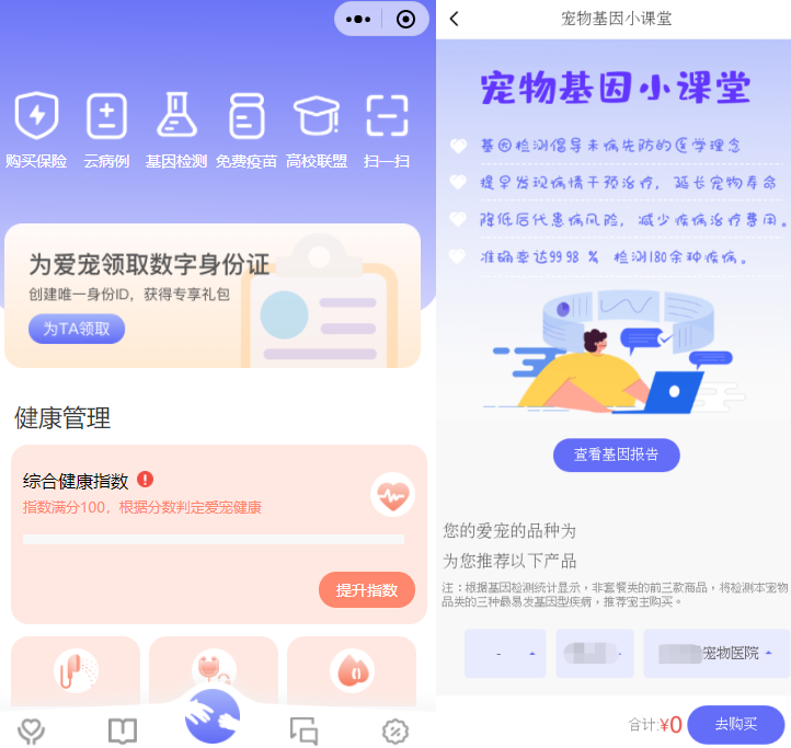 【生活服务-其他宠物健康服务】:适用于提供动物基因检测服务。