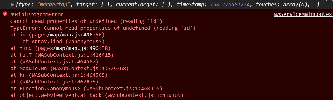 点击 handleMarkTap 事件, 真机中报错 undefined (reading 'id') ,但是又能获取到 id