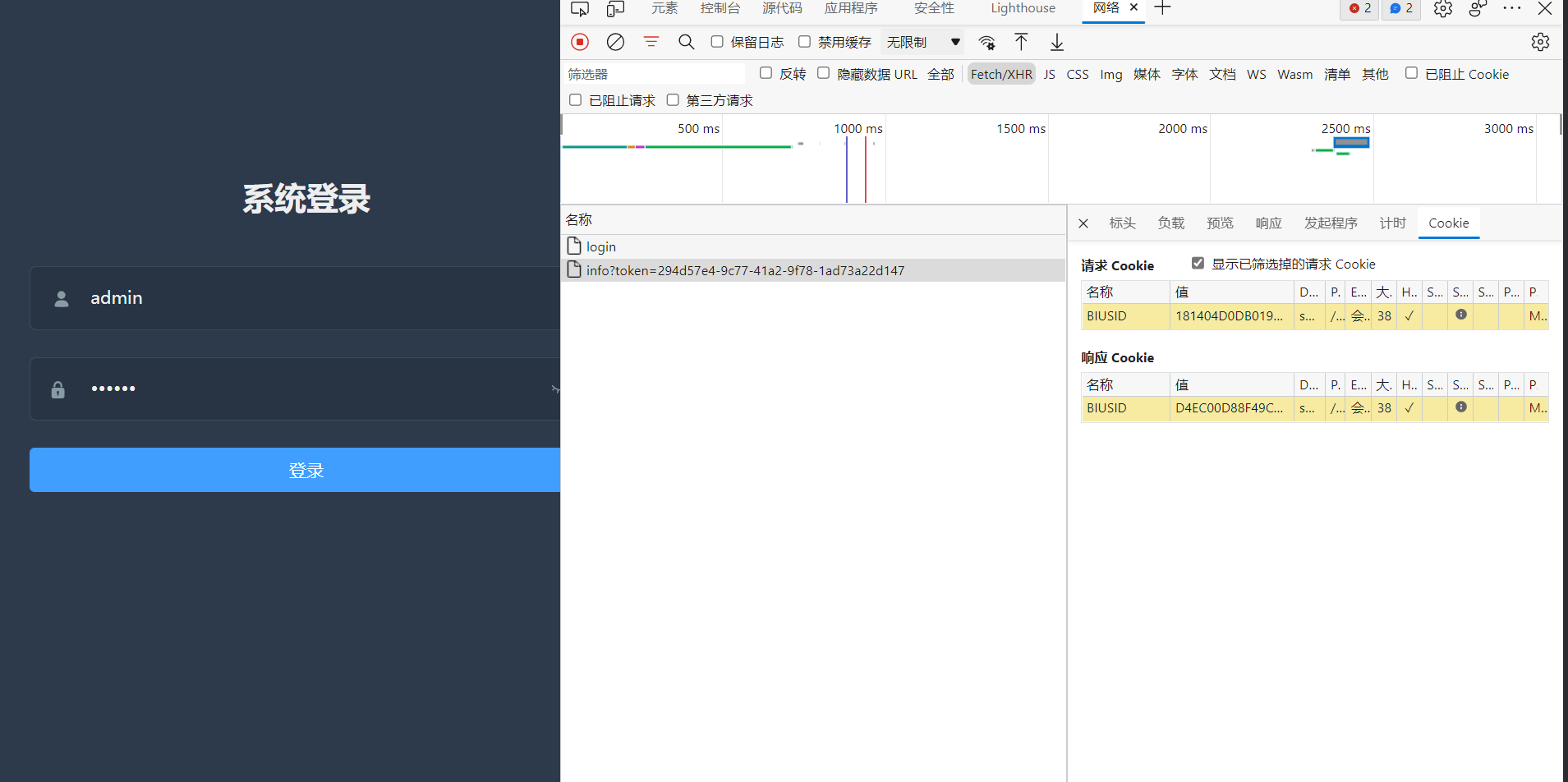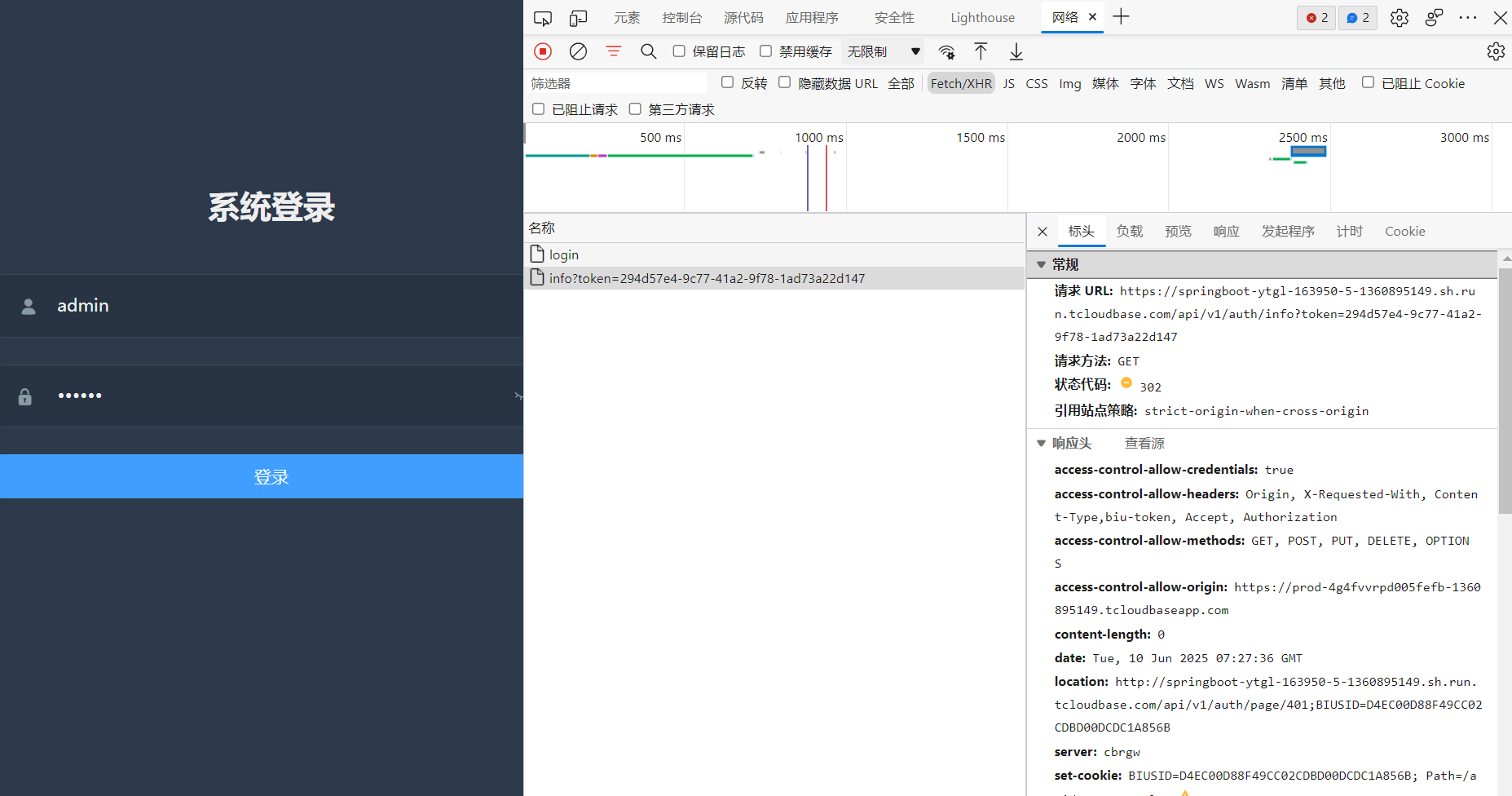 第一次请求login接口成功,按逻辑需携带cookie请求info接口,但cookie不一致 导致失败重定向