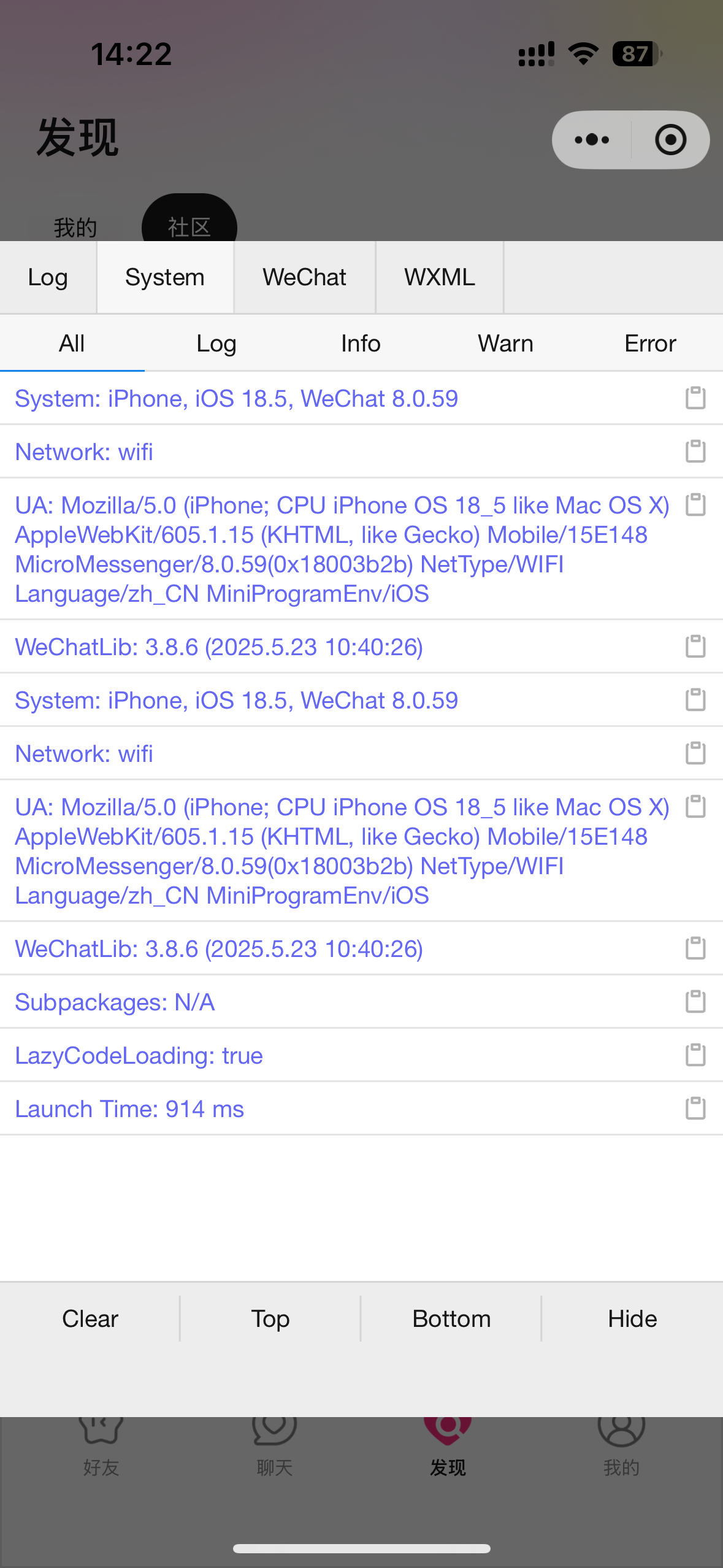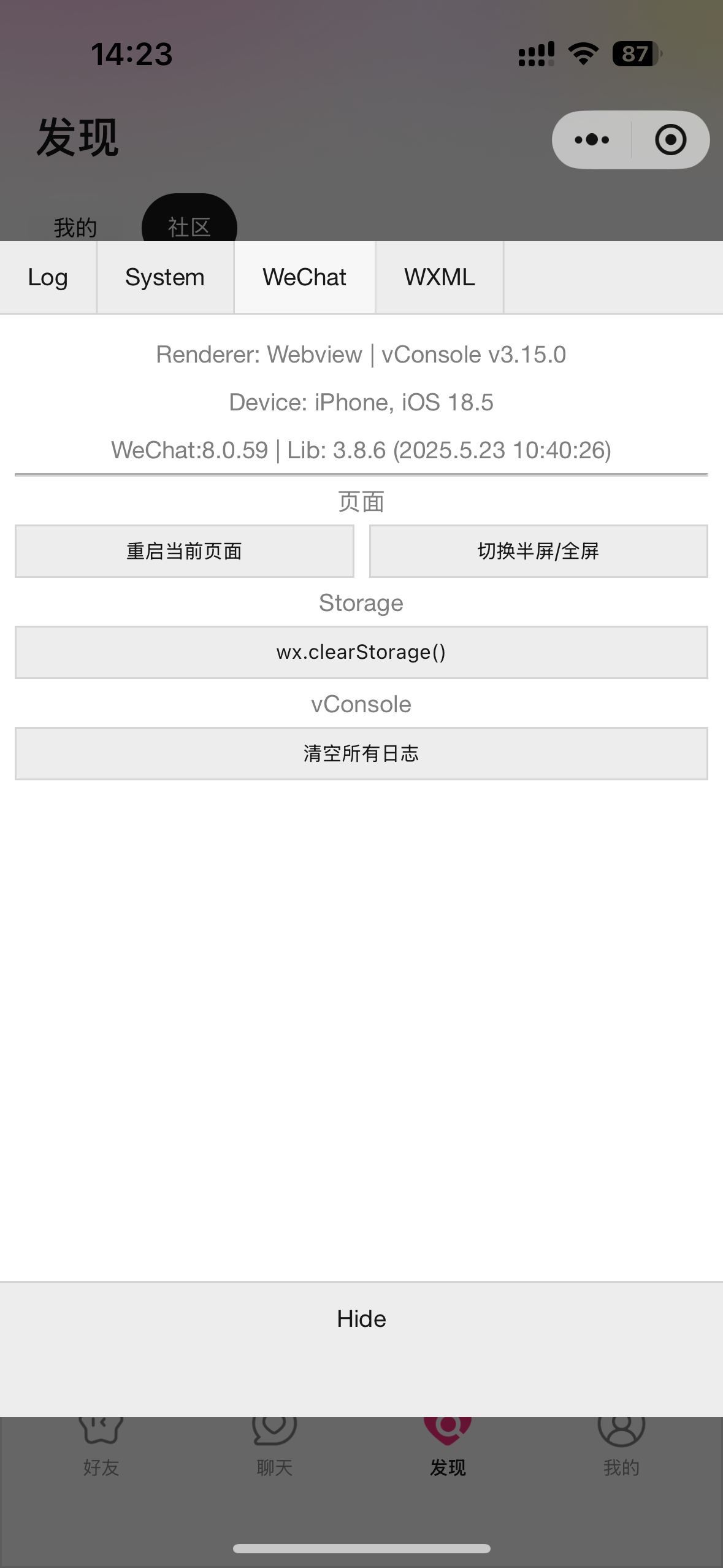 以下两图为有问题的手机切换另一个微信账号打开的调试窗口相关信息: