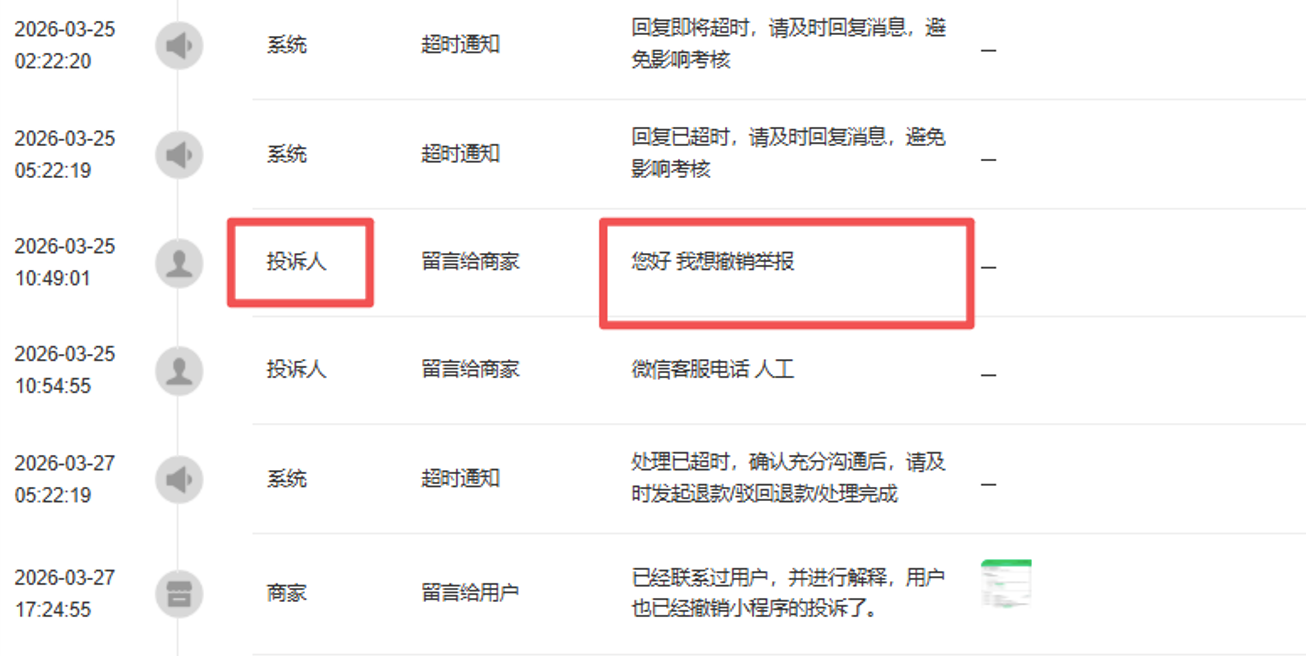 但是不清楚以为用户撤销投诉以后,就可以了。没有及时点击处理完成。 第二次投诉,仍然驳回,提示仍存在交易风险或违反平台规则的情形