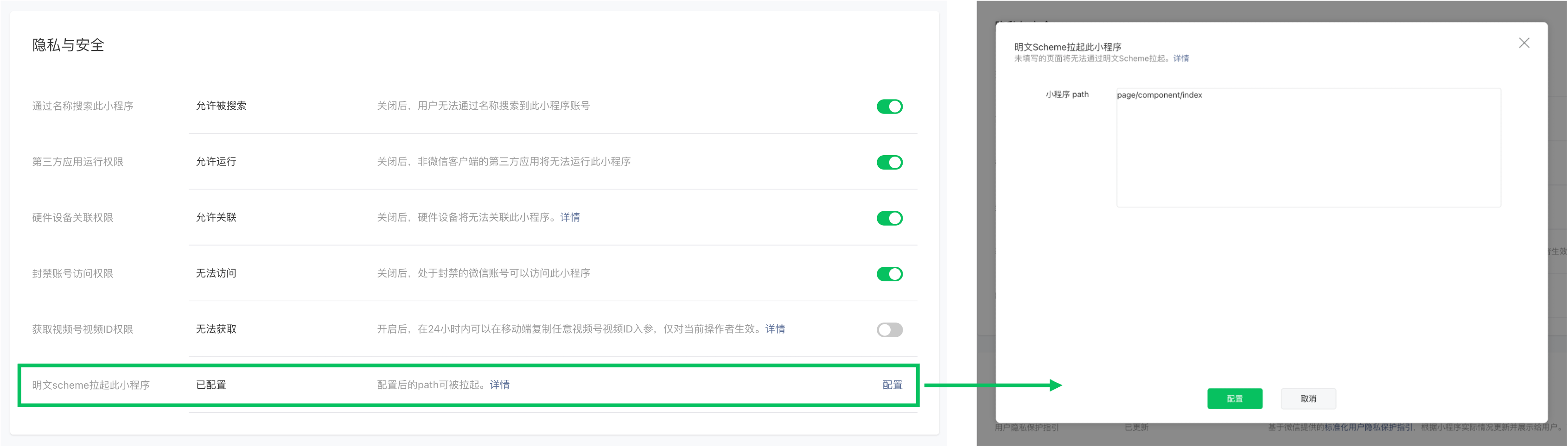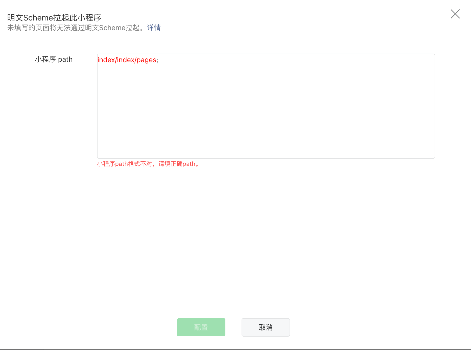 接口会返回 conf_path_list 表示可以配置哪些路径,如果没有估计就是没有上线审核通过,通过了在配置这些路径