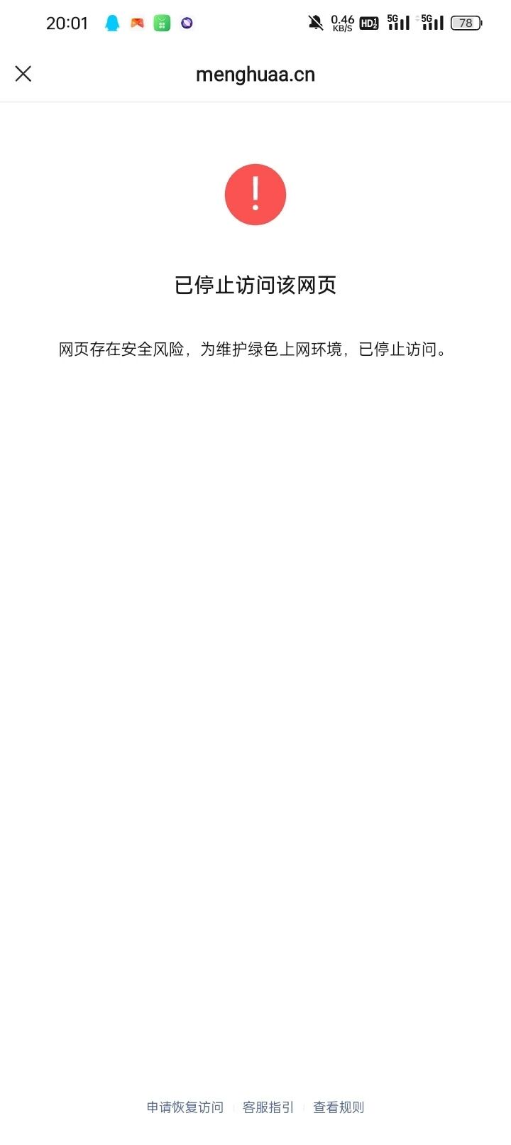 menghuaa.cn 我真的好端端的,怎么突然被拦截了。这个月都拦截两次了。 麻烦尽快核查恢复