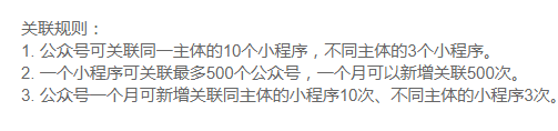 公众号关联小程序的规则https://kf.qq.com/faq/170109m6BVvU170109MjANjq.html