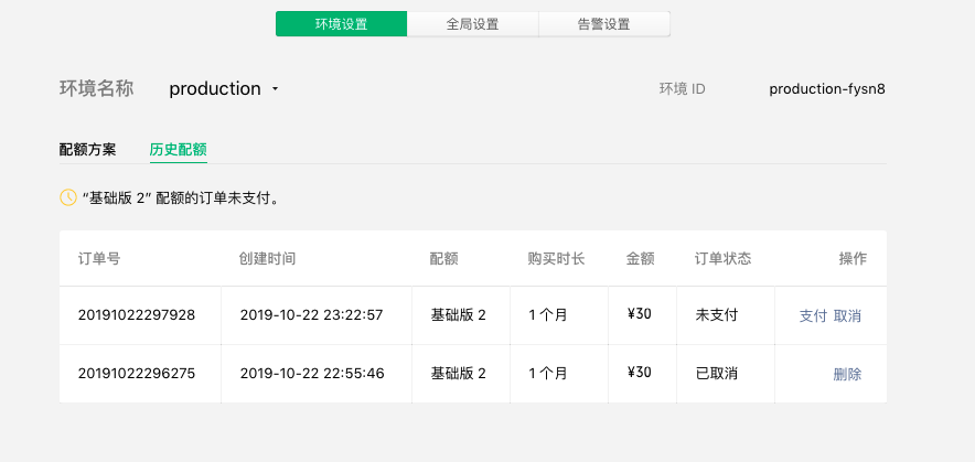 升级一下配额,支付成功,显示未支付,然后我取消第一个(没有退款),又支付一个新的订单,还是显示未支付。