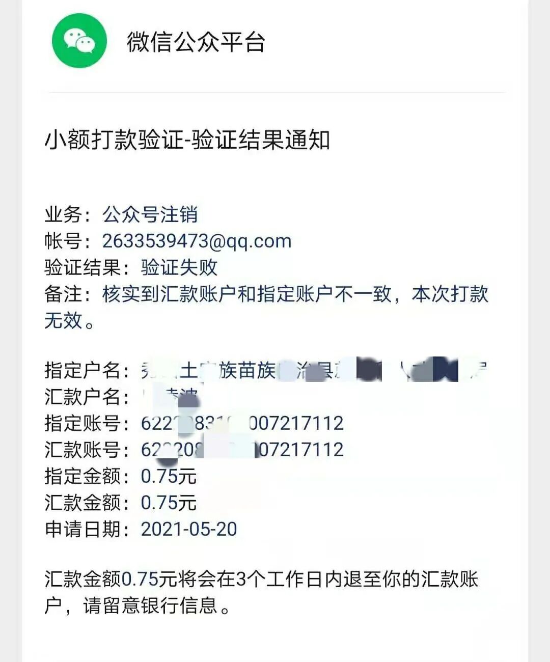 企业的微信公众号有对公账户,用指定账户汇款0.75了,还是注销不了,怎么处理?客服也联系不了