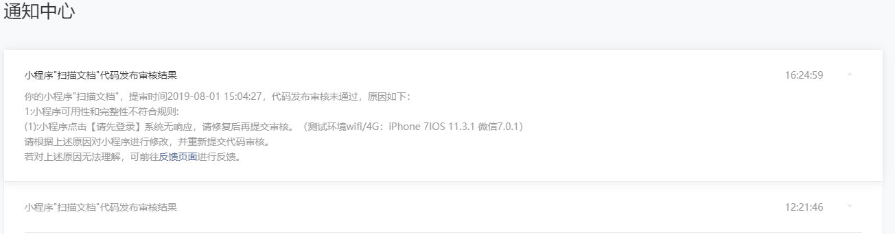 小程序提交审核两次,都未通过。