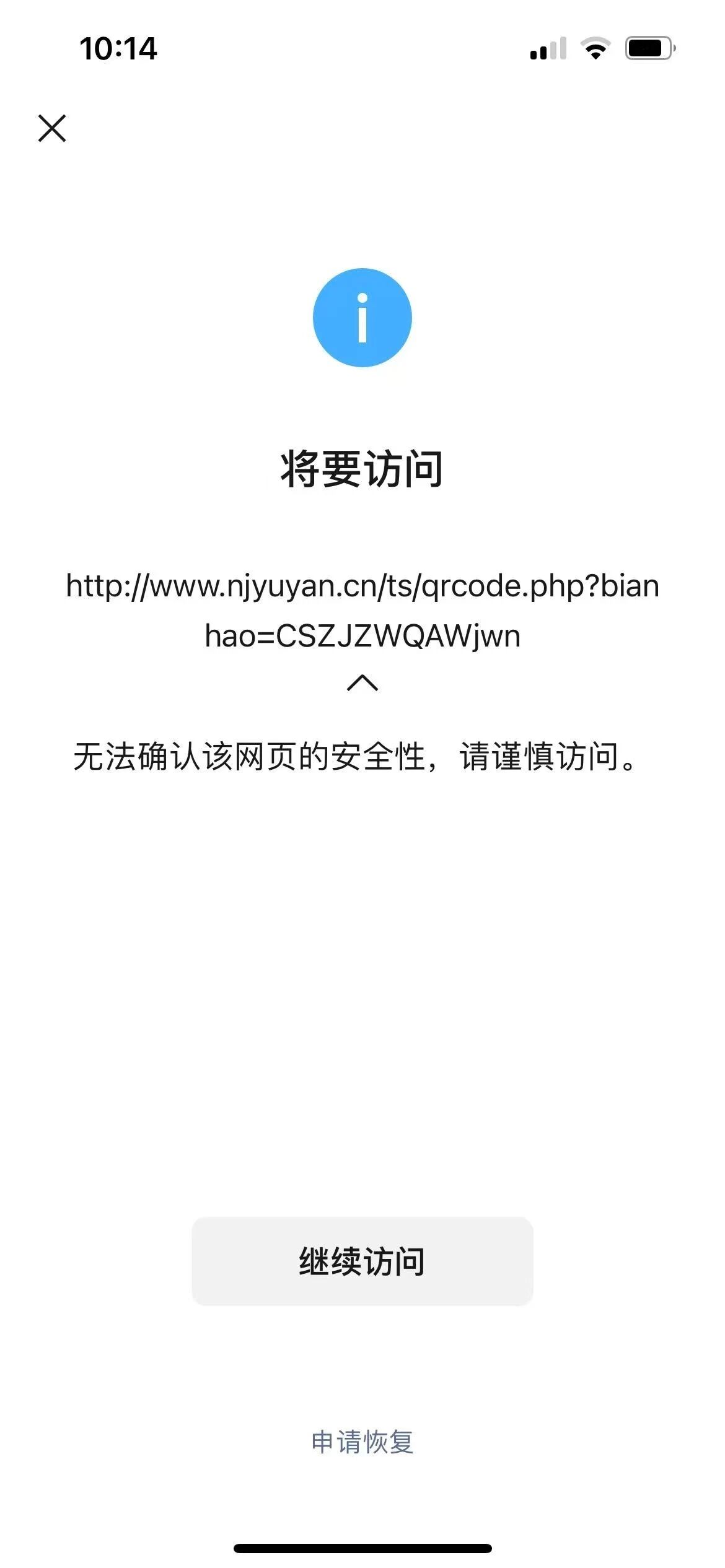 遇到在微信中扫码二维码打开链接,提示“无法确认该网页的安全性,请谨慎访问”,很长时间没有解决,域名已经备案,业务域名,js白名单,网页授权域名都已经添加,但是还是不行,申请恢复也没用,着急用!!!