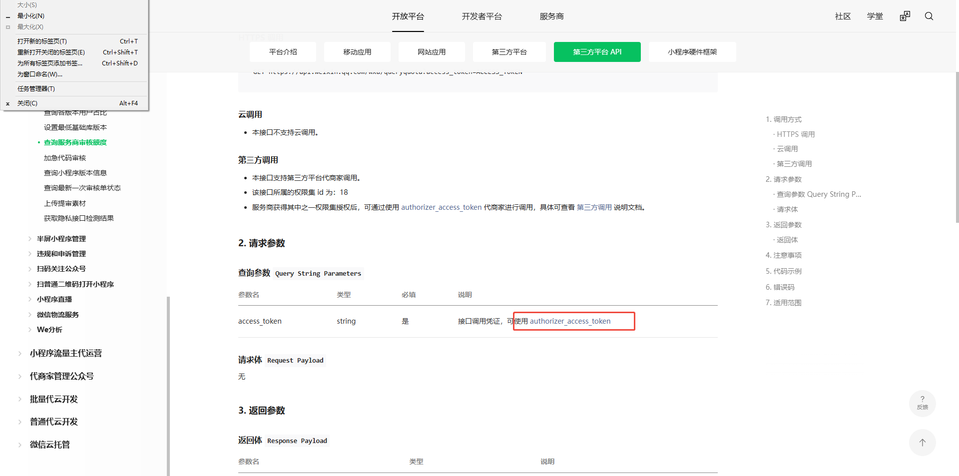 我们调查询服务商审核额度接口 https://api.weixin.qq.com/wxa/queryquota?access_token=ACCESS_TOKEN