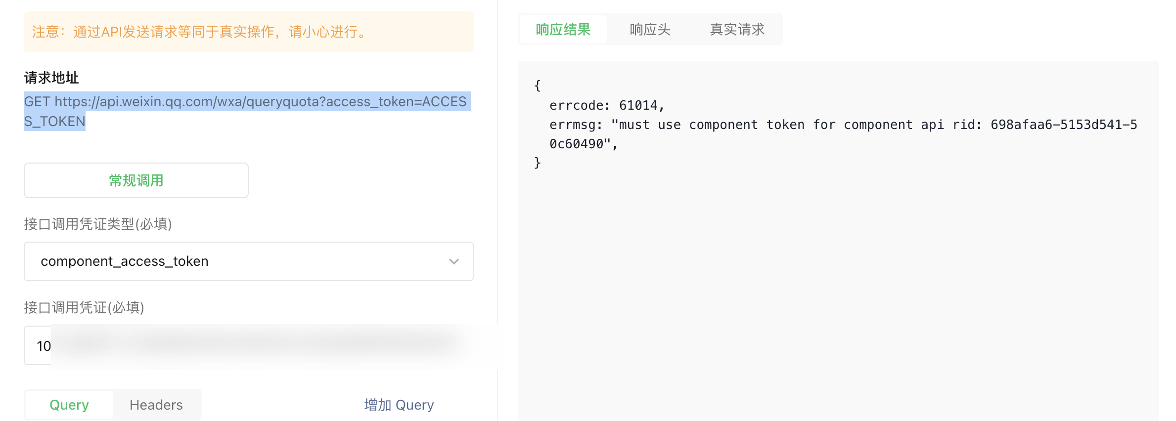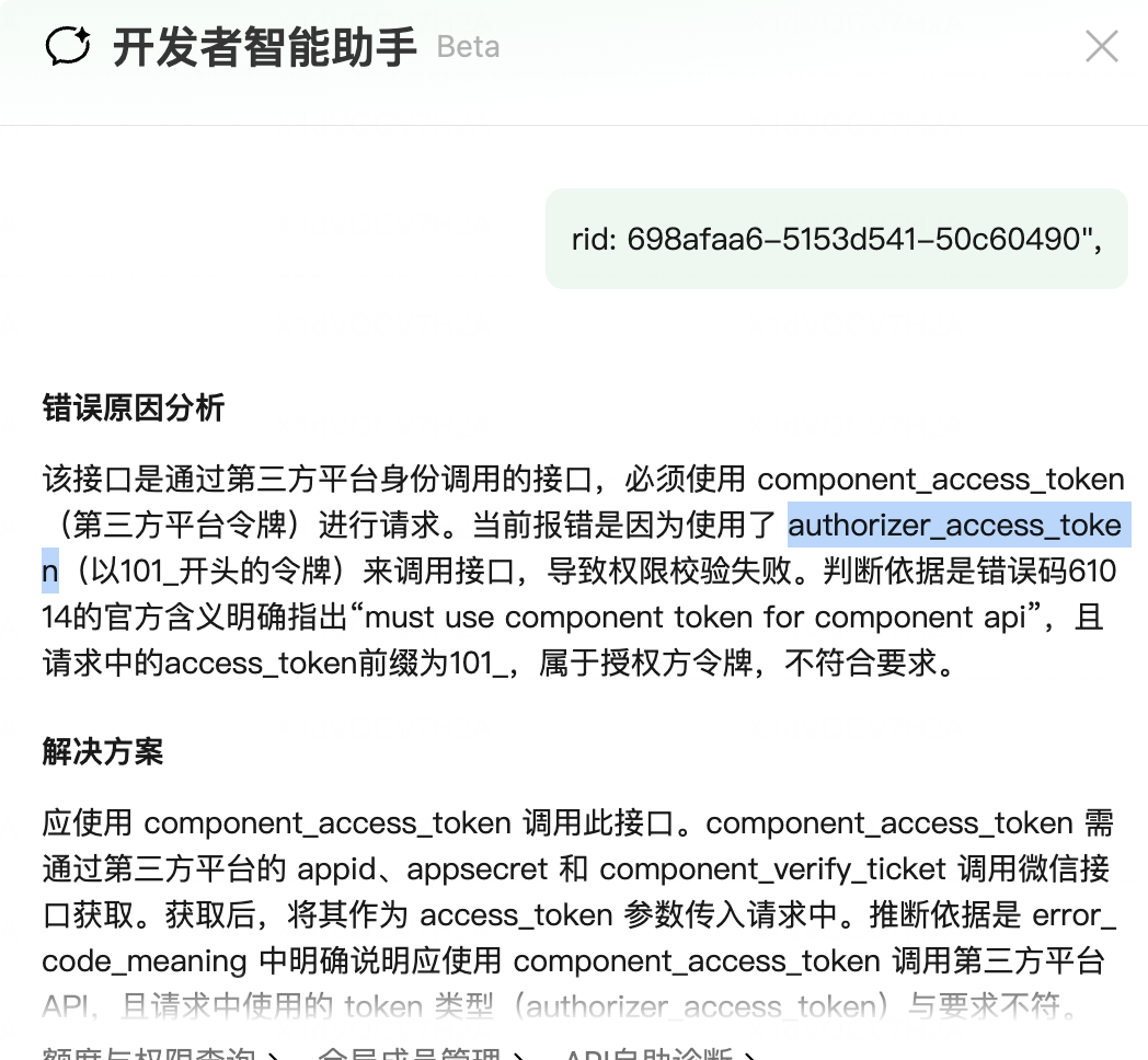 提示:component_access_token不对,说我用错了,可能用的authorizer_access_token (101_开头),rid: 698afaa6-5153d541-50c60490",