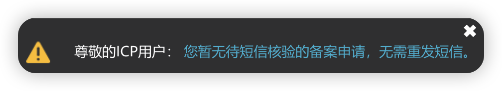 尊敬的ICP用户: 您暂无待短信核验的备案申请,无需重发短信。