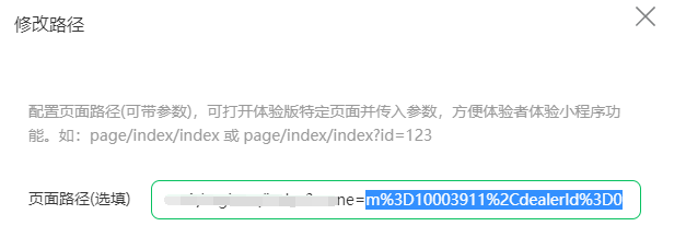 修改完页面路径参数后提交,这时会显示一个正常的页面,路径也是提交的值,但是关掉后直接打开体验版二维码时路径就变了,点击修改页面路径时参数也不是之前提交的值。