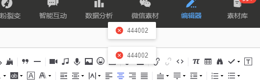 第三方开发的软件网页比如微小宝和孤狼工作室的微信运营版,在提交网址的时候,提交参数里type=10时会出现这个444002错误代码,cgi-bin/operate_appmsg?t=ajax-response&sub=create&type=10&token=1897554756&lang=zh_CN