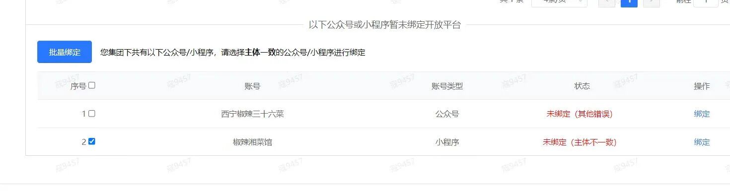 你好,请提供完整网页截图,是指在哪里绑定open账号?通过第三方平台服务商调用api进行绑定吗?