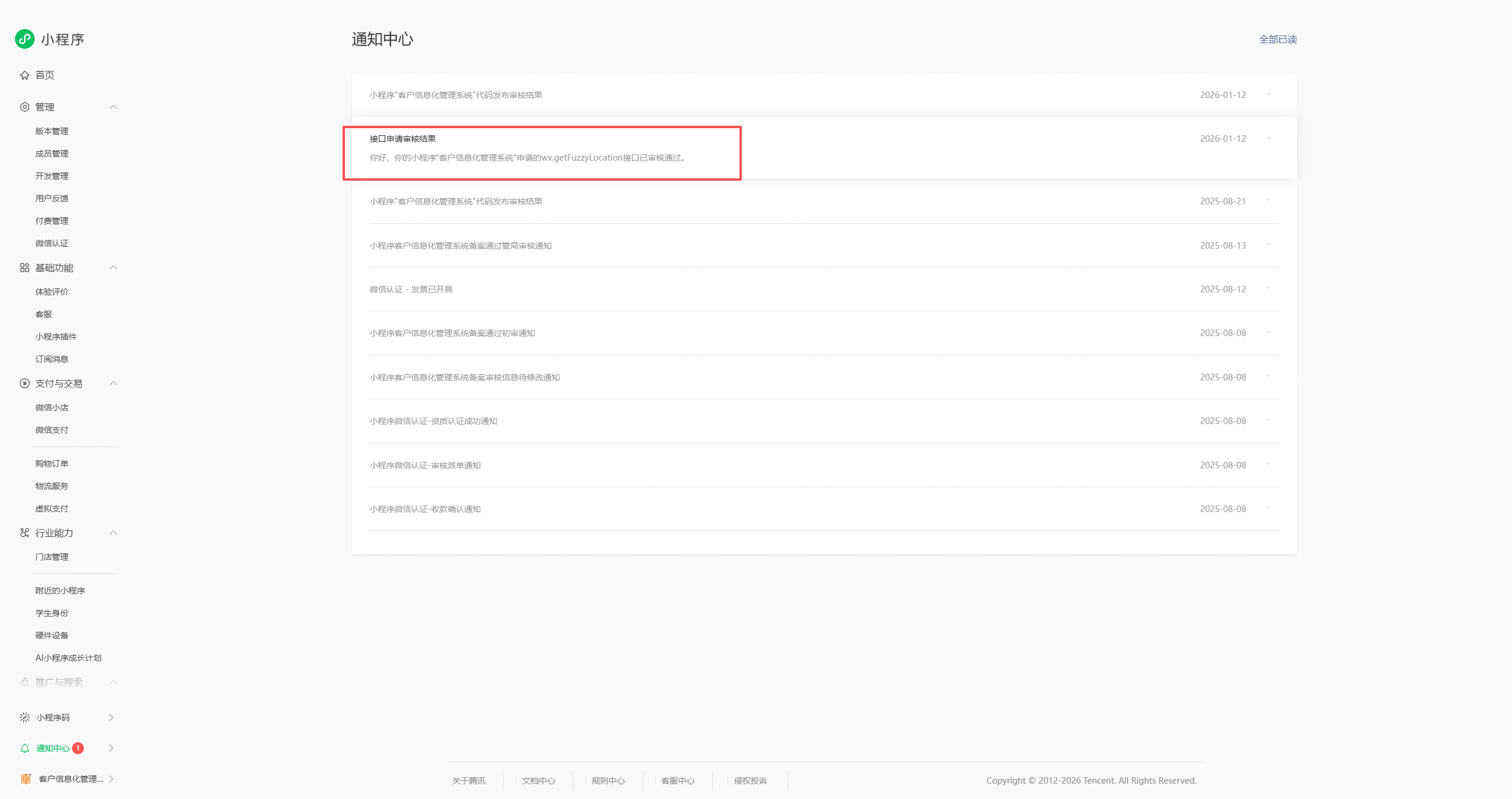 收到审核通过的系统消息了