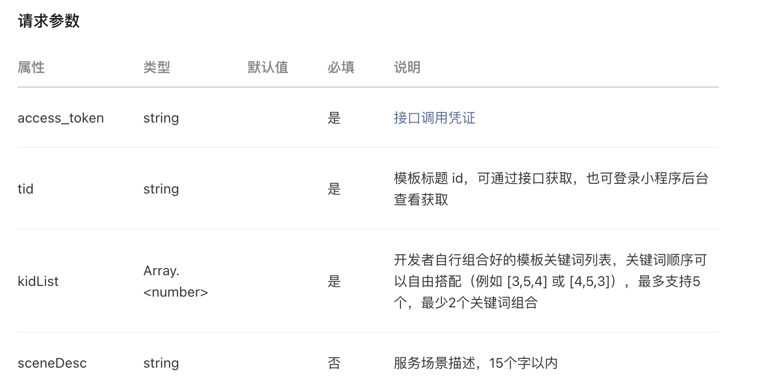 你可以拉取一个模板去看看https://developers.weixin.qq.com/miniprogram/dev/api-backend/open-api/subscribe-message/subscribeMessage.getPubTemplateKeyWordsById.html