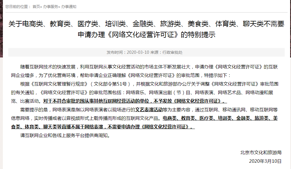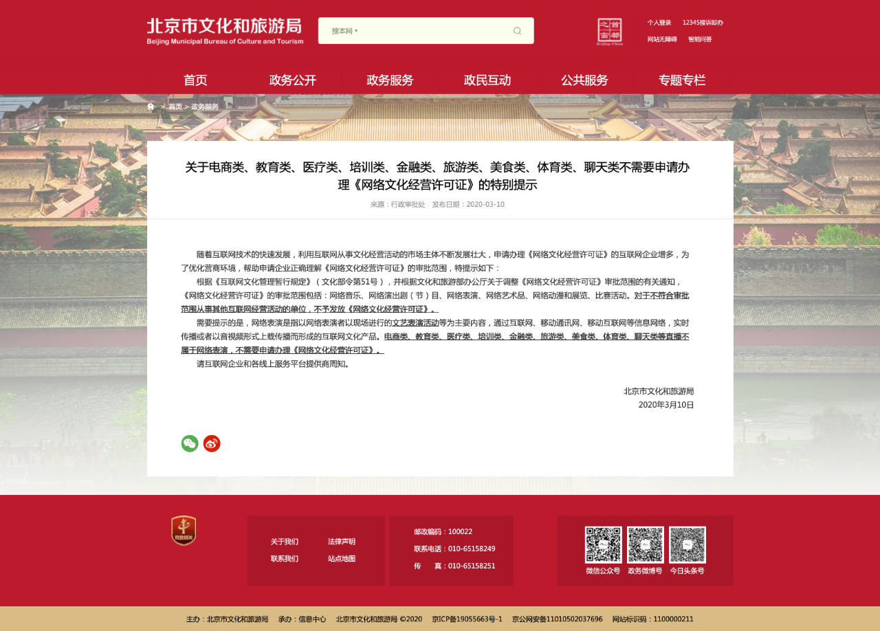 附:北京市文化和旅游局网址:http://whlyj.beijing.gov.cn/zwfw/202003/t20200310_1786910.html