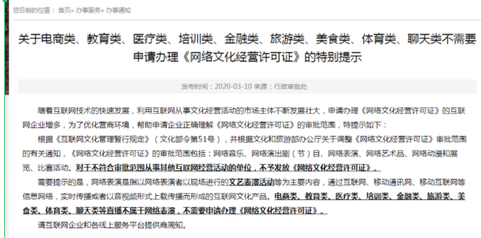 ②《网络文化经营许可证》(经营范围含网络表演)(适用于含表演性质的直播)