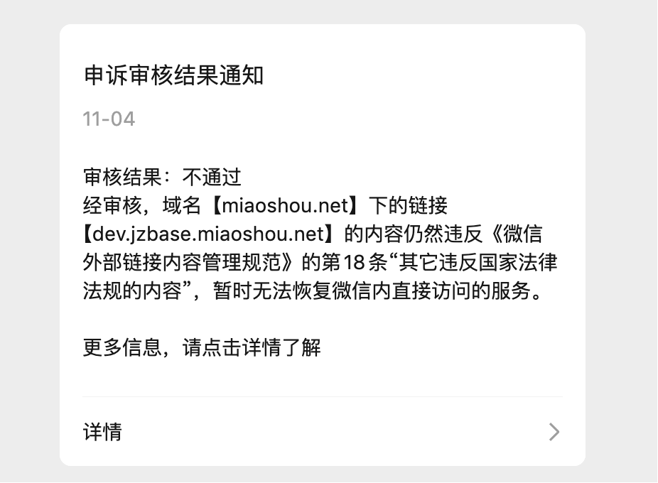 http://dev.doctor-science-jzadminapi.miaoshou.net/ 链接内容已调整,微信内申诉还提示不合规