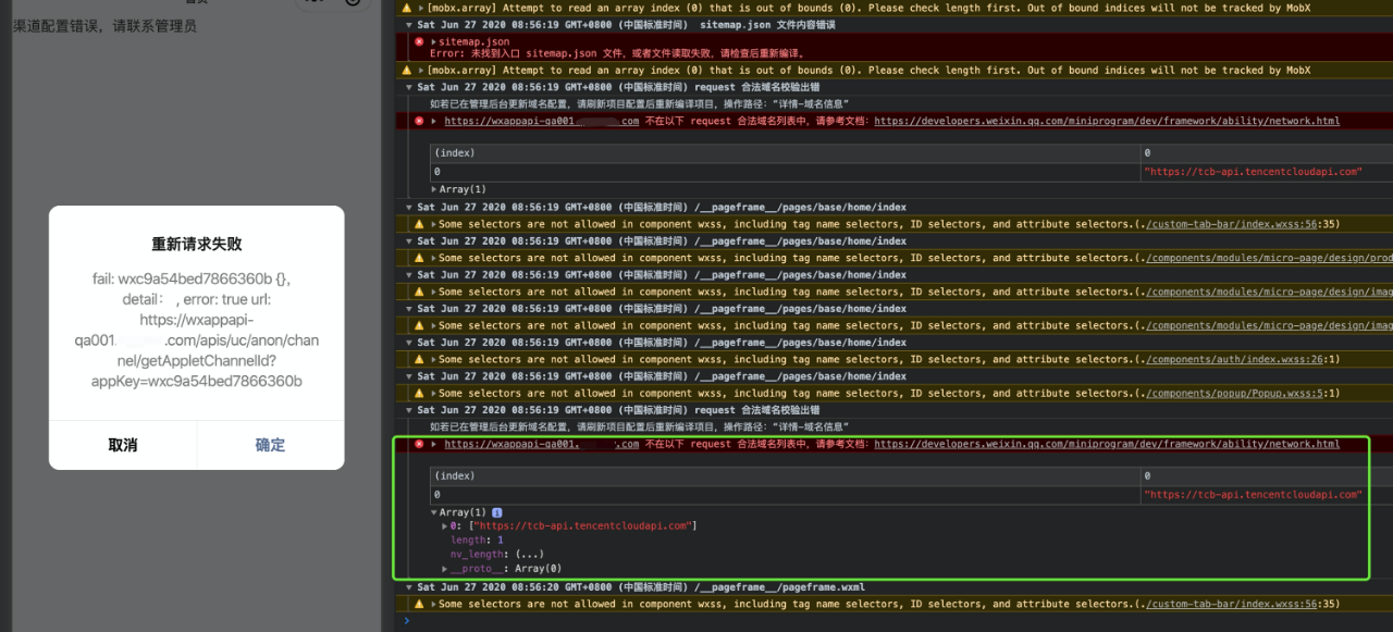 因为项目还没上线,所有错误都是在体验版和开发版出现的