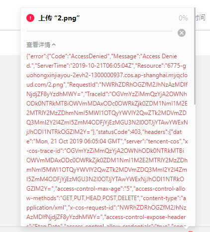 在存储界面,无法上传文件。会出现下面的图。