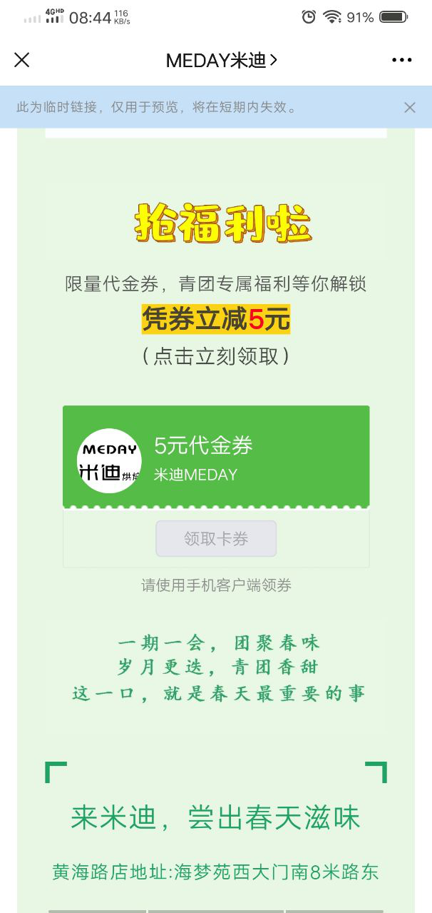 这个券单独发给某个用户可以领取,放到公众号里,预览的时候就领取不了,是因为没有发布吗?