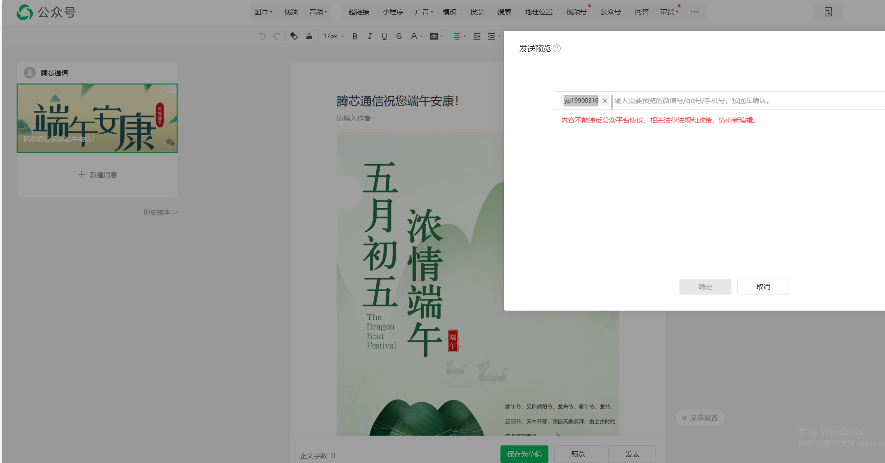 公众号普通图文发布显示违法平台协议
