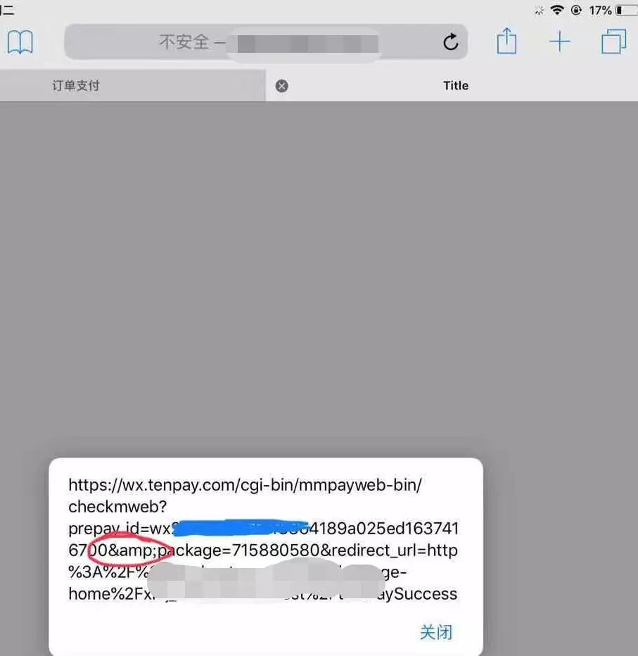 检查一下服务端返回的Url和前端最终跳转的url是否一致, 我们的情况是最终跳转的url少了package参数,参数在前端丢失了。 参考的case: https://blog.csdn.net/shark_pang/article/details/107930849