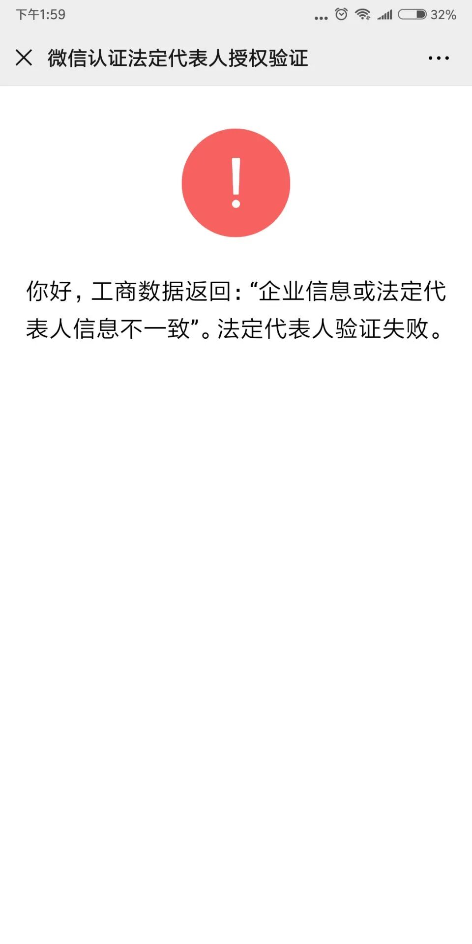 申请服务号认证的时候法人扫码验证提示法定代表人信息不一致,麻烦同步一下工商数据
