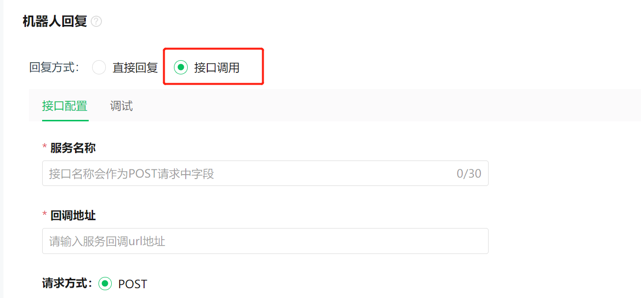 我在官方文档https://developers.weixin.qq.com/doc/aispeech/platform/dialog/set_reply.html中看到有自定义API接口,但是在https://chatbot.weixin.qq.com/平台上,却找不到相关配置页面。