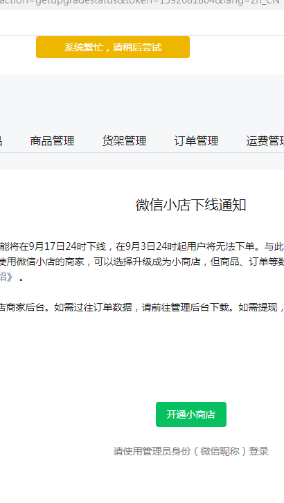 你截图的这个是【微信小店】,不是【微信小商店】,两个不一样的产品。