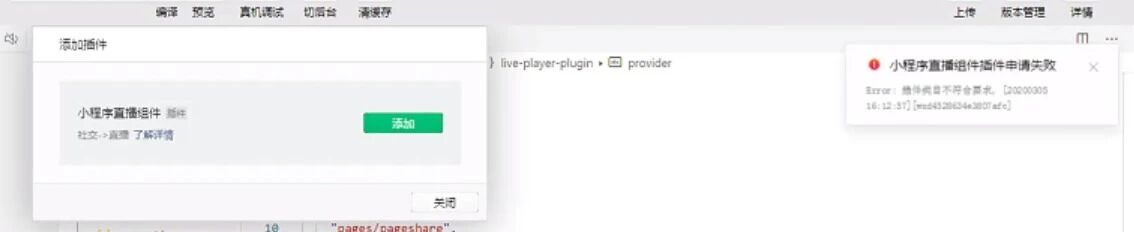 现在需要开发直播功能,按照要求在代码中加入了直播插件