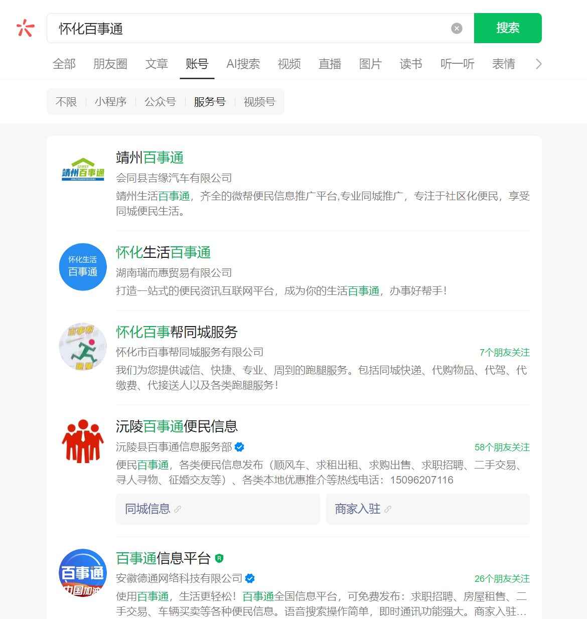 我们的微信公众号(名称:怀化百事通,AppID:wx216afea9ab4eecd6)在微信上搜不到是什么原因呢?