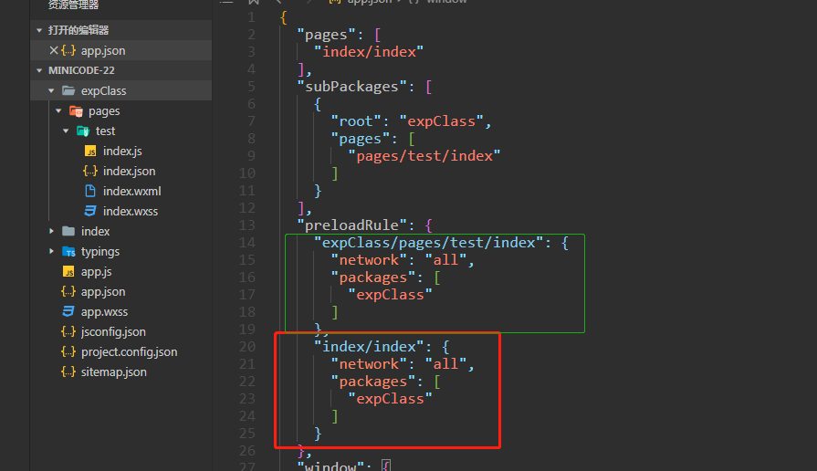 以下是我的目录 根据文档 preloadRule里key是页面路径 而且我也试了 expClass/expClass pages/expClass 都是不行的