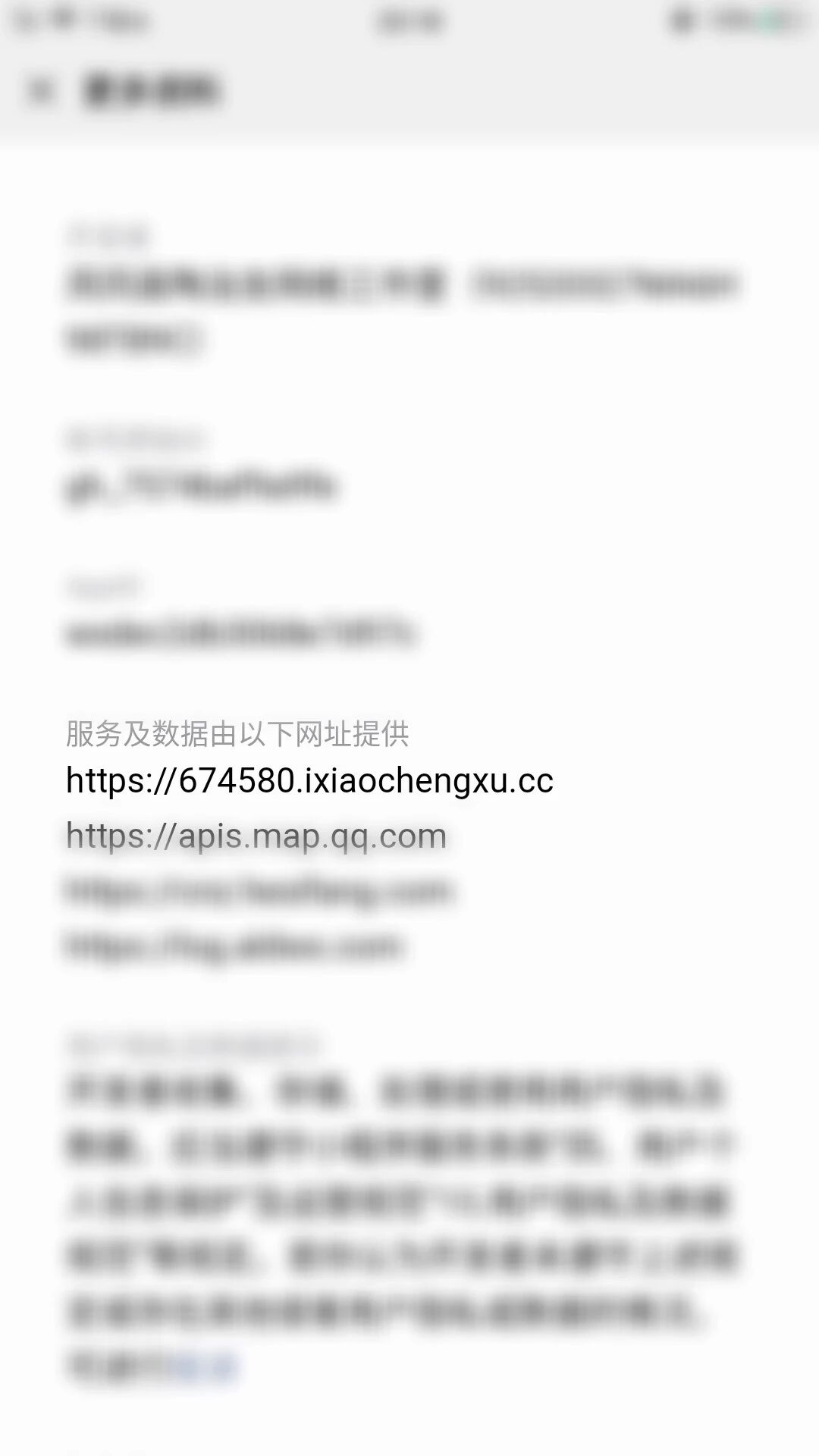 第二张图是该小程序资料面板上的介绍,有个674580.ixiaochengxu网址,可是打开这个网址没有找到这样的网站,
