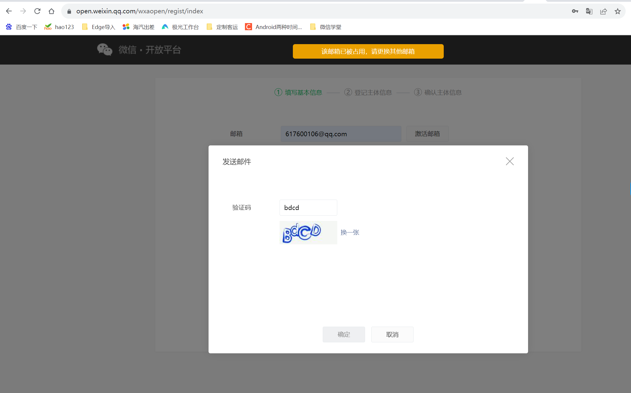 当前邮箱是否注册过微信公众平台(也就是公众号或者小程序)如果注册过就需要换一个邮箱注册开放平台 他们两个平台属于两个体系
