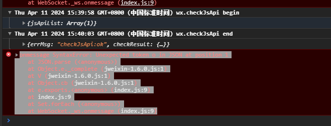 onmessage SyntaxError: Unexpected token o in JSON at position 1